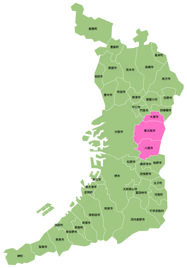 出張費:東大阪・大東・八尾は無料、その他地域は距離に応じて加算